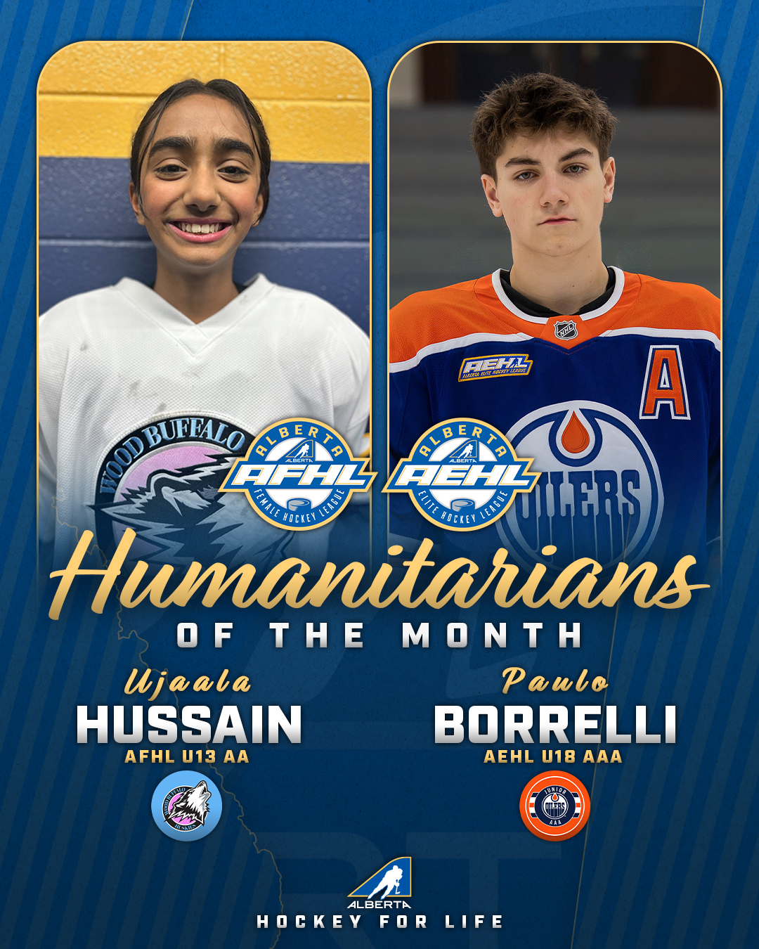 The Alberta Elite Hockey League and Alberta Female Hockey League are proud to announce the Humanitarians of the Month for the Month of November.